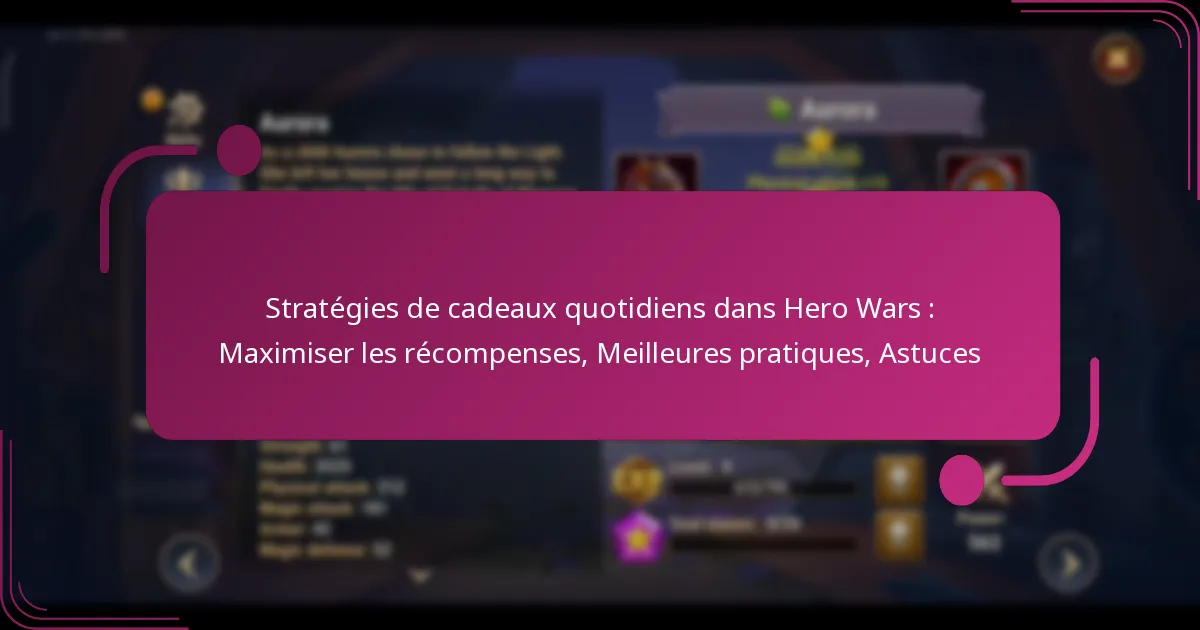 Pour maximiser les avantages des cadeaux quotidiens dans Hero Wars, les joueurs doivent se connecter régulièrement pour réclamer des cadeaux et prioriser ceux qui correspondent à leurs besoins de jeu. De plus, participer à des événements et utiliser les cadeaux de manière stratégique peut améliorer la performance globale du jeu.
