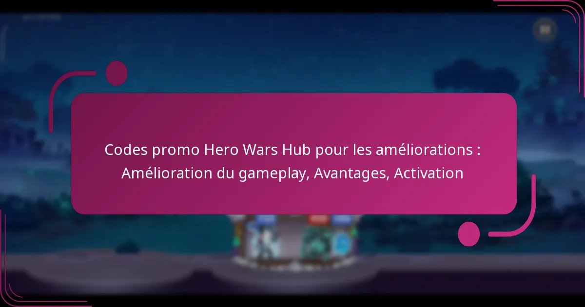 Codes promo Hero Wars Hub pour les améliorations : Amélioration du gameplay, Avantages, Activation